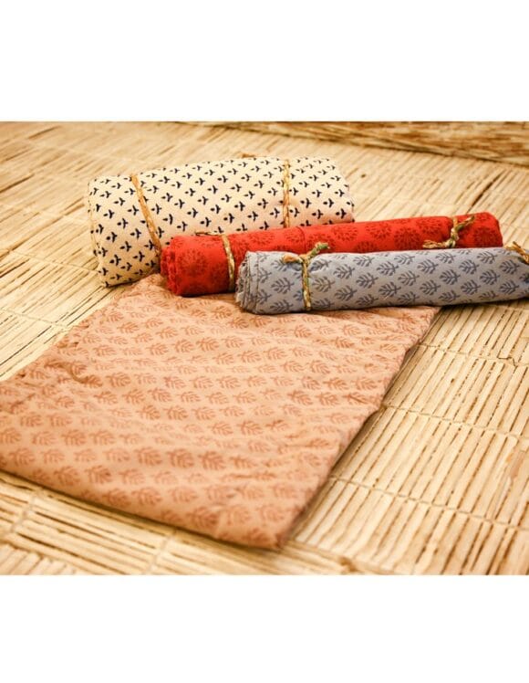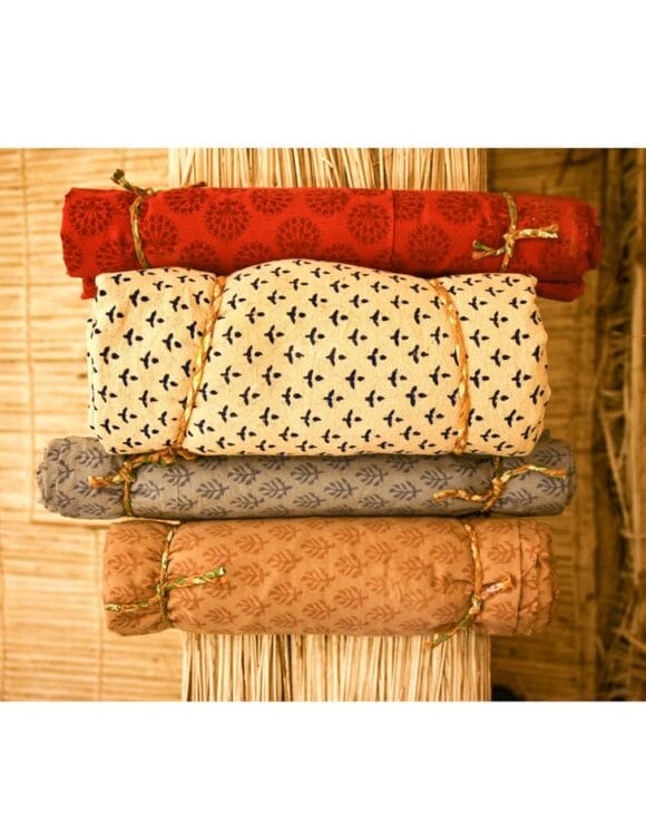 Tushar Handworks is blessed to have collaborated with local weavers & knitters almost three decades back in order to produce sustainable slow fabrics, both finished & grey, using god gifted techniques of artisans. The major part of our fabric weaving constitutes a large variety of organic cotton fabrics which are 100% GOTS certified. This is followed by an extensive use of natural hand processes on grey fabric like handblock print or an intricate shibori which makes up for the final finished fabric ready to be shaped into something exotic.